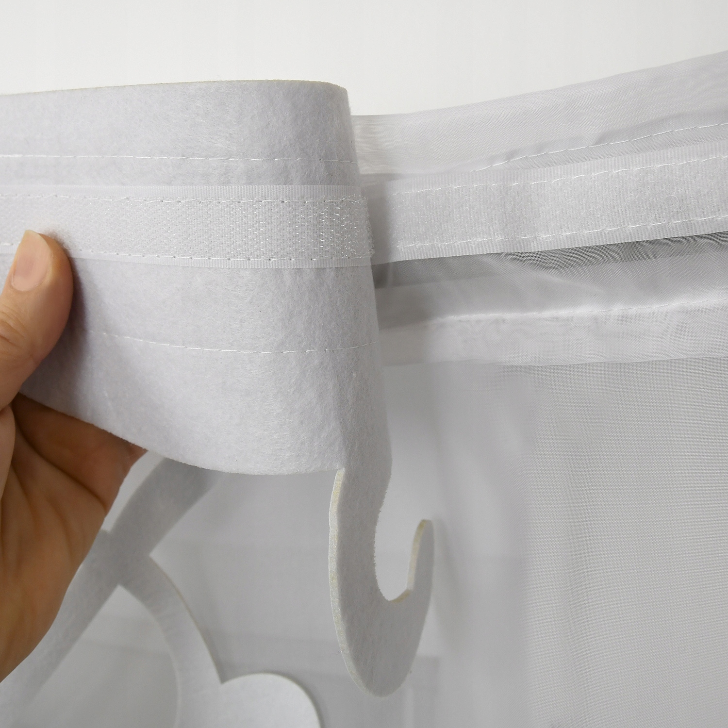 W KOMPLECIE DWIE TAŚMY DO UPIĘCIA FIRAN ORAZ PLASTIKOWY DRĄŻEK DO USZTYWNIENIA PANELU.